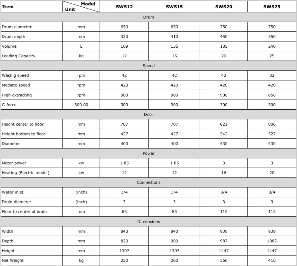 • High spinning speed can reach to 330G-factor that removes more water to reduce drying time and save energy, and bolting down is not required.
